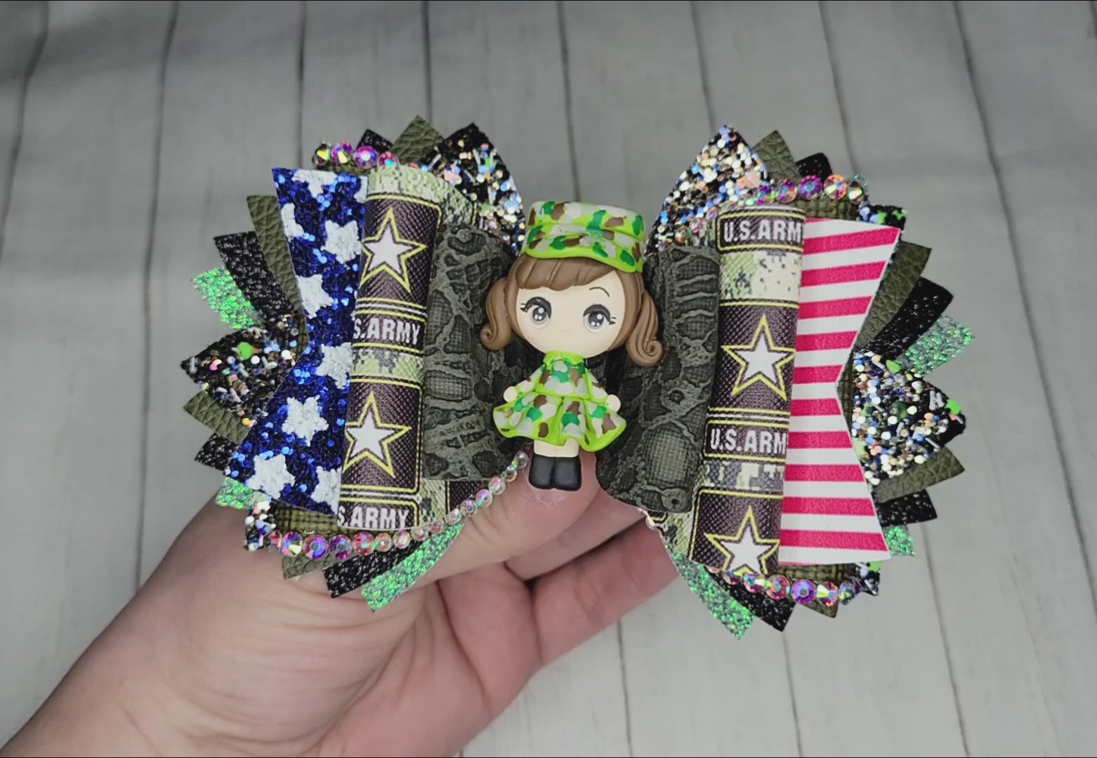 This handmade bow was made to honor all of our Military Men & Women who have served, are serving, or plan to serve in the future. THANK YOU for your service!