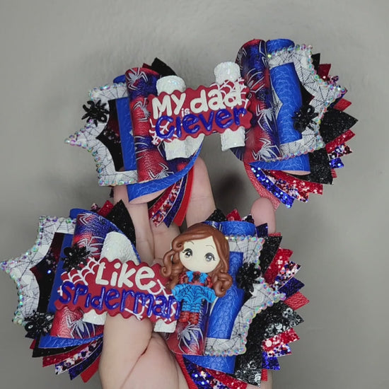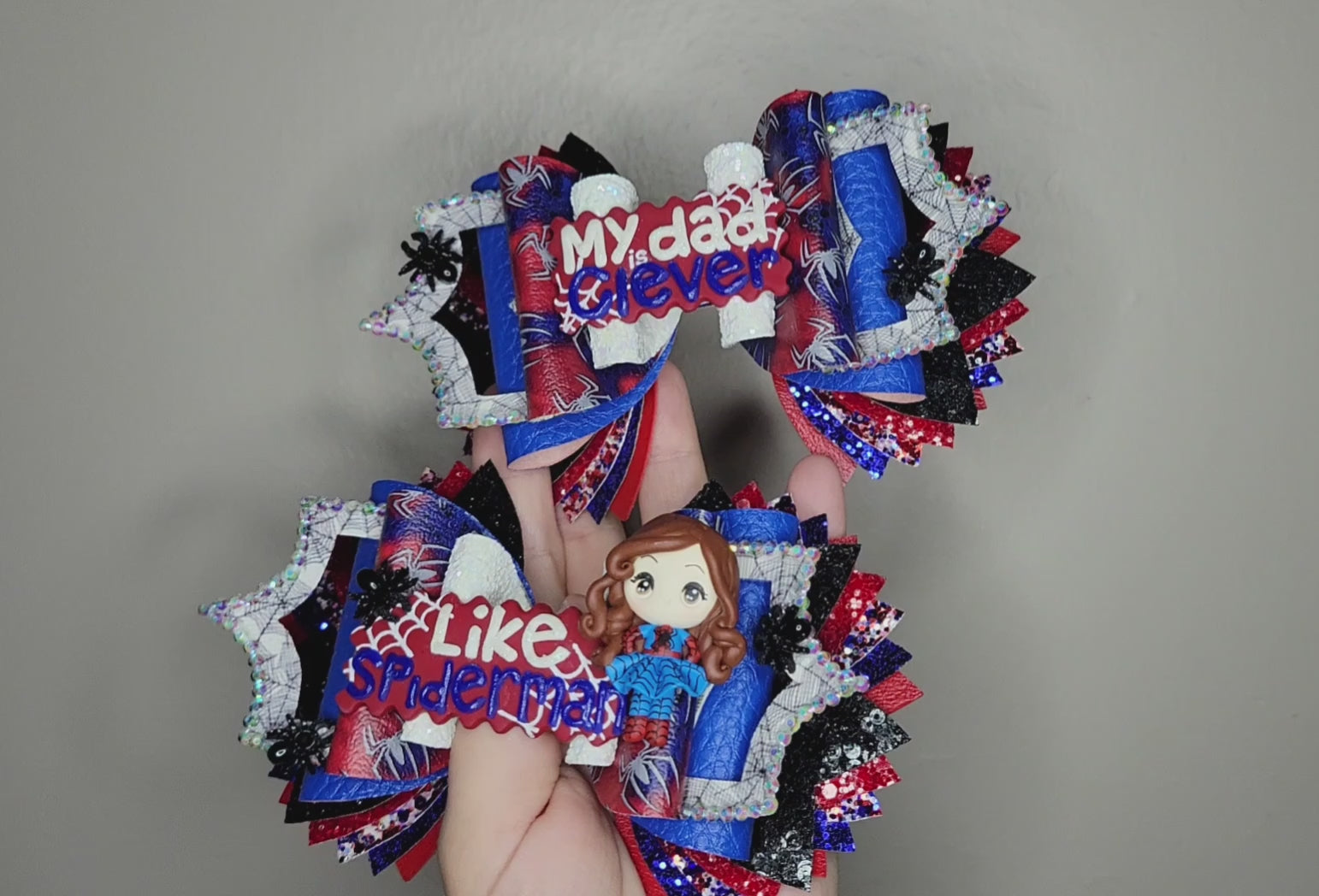 "My Dad is Clever, like Spiderman" XL Pigtail Bows