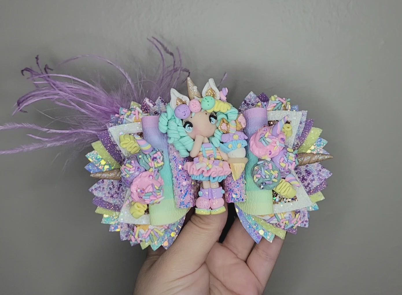 We had TOO much fun with this bow! We decked out this bow from top to bottom with sugary, sparkly, sprinkle goodness. There are several handmade clay accent pieces made her at AMW Designs including the ice cream scoops and sprinkles throughout!